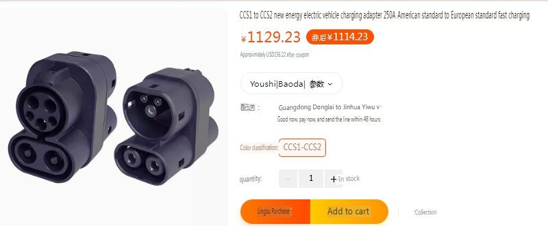CCS1 to CCS2 new energy electric vehicle charging adapter 250A American standard to European standard fast charging
