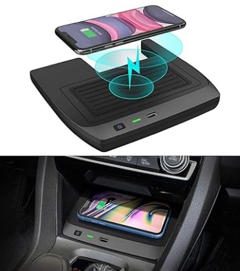 Charger for Honda Civic 2016-2021 with USB Port, Wireless Charging Pad for Honda Civic Hatchback Si Coupe Type R Accessories 2021 2020 2019 2018 2017 2016