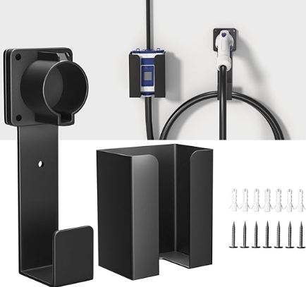 bussdis EV Charger Holder-Charging Box Holder, Nozzle Holster Dock and Cable Organizer, Wall-Mount Connector with J-Hook Combination for J1772, EV Cable Holder Wall-Mount Electric Vehicle Charger.