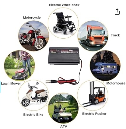24V 5Amp Smart Automatic Battery Charger, Portable Battery Maintainer with XLR Connector for Car Boat Lawn Mower Marine Wheelchair Motorcycle eBike Black
