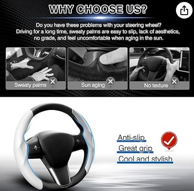 Canvcle Custom-Fit Steering Wheel Cover for Tesla, Telsa Model 3 / Y Carbon Fiber Steering Wheel Cover for Men/Women, Anti-Slip, Comfortable Grip, Breathable, Model 3 / Y Accessories (White)